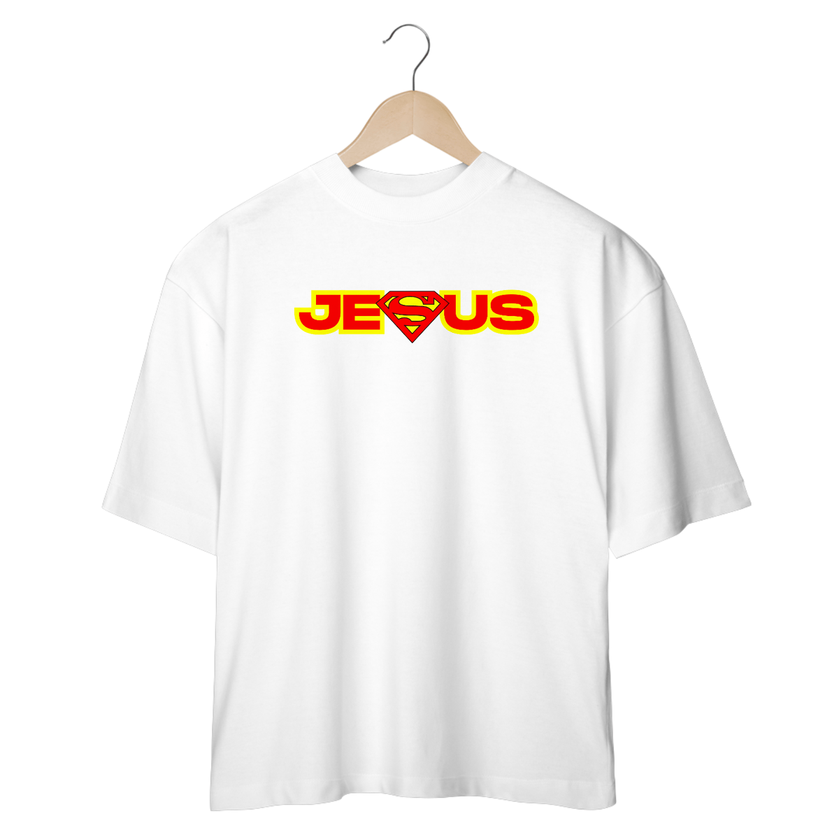 A Camiseta Oversized Jesus une fé e atitude em uma estampa marcante e cheia de significado. Inspirada em um símbolo de força e salvação, a arte transmite a mensagem de que Jesus é o verdadeiro herói, aquele que sustenta, protege e salva.